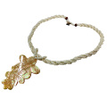 フラやタヒチアンのステージに、リゾートに、普段使いに、とにかく活躍の幅が広い、シンプルで存在感のあるシェルビーズネックレスの新デザイン、ホワイトが登場です。 これ、天然シェルの色味も、ホワイトビーズも、とっても肌なじみがよいので、フラやタヒチアン衣装にはぴったりなんです。 トップ部分はハワイの象徴デザイン、大中小3つのプルメリアを彫刻した天然シェルがシンプルで素敵。見るひとの目を集めます♪ 数あるビーズの中から肌なじみの良い、発色よくキラキラ輝くホワイトビーズを丁寧に編みあげました。チェーンが、シェルトップの自然な色味を格段に惹きたてていますね。 これ1つお洋服にプラスするだけで、シンプルだけどこれ1つで十分な存在感のあるパーティー仕様にグレードアップしますね♪ (天然素材、手作りにこだわっておりますので、貝の色味や輝き、デザインの位置等にはひとつひとつ違いがあります。予めご了承下さい。) ハラウや発表会、サークルのお仲間やお友達同士など、表示在庫数以上にまとまった枚数がご入り用のときは、 お電話:03-6303-6390ララフラ(ルーツ 代表)、またはメールにてお問い合わせくださいませ。(シーズンや枚数によってはある程度の納期を頂くことがございます。予めご了承くださいませ。)