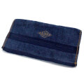 使いならした感じの素敵なデニム調に仕上がったタオルが新着です! インディゴ染めという特殊な染法を使っていて独特のこなれ感が人気なんです。 注目は、なんといってもインディゴ染めデニムネイビーの雰囲気満点な落ち着いた風合い。 ごらんの通り、とっても現地感あふれる仕上がりで、ALOHAの大文字をロゴ調に囲んだスタイルの刺繍が入れてあったり、デザイン糸を別色にすることでアクセントをつけたりとシンプルながらも完成度の高さが秀逸。 ステッチの糸の色合いとインディゴ染め生地の組み合わせがこなれた感じのデニム調に仕上がっていて素晴らしいんです。 サイズは33cm×75cmで、一般的なスポーツタオルと同じサイズ感。 洗面所にかけやすいフック掛けも付いていて、洗面所のタオルとしてはもちろん、レッスンやジムに毎日持ち運ぶタオルとしても、デザイン性だけでなく吸水力もばっちりな本場のタオル、プレゼントにもおすすめです♪