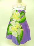 胸元まで上げればかわいいAラインのワンピースになり、ウエストまで下げればロングスカートに早変わり。 2通りの着方が楽しめる実力派子供用ハワイアンワンピースです。 紐は首の後ろで結んでも良し、前でリボン結びしても良し、と何通りものスタイルで大活躍してくれるワンピですよ。 フラのケイキクラスで活躍するお子様なら、ホイケやメレフラの衣装としてももってこいです♪