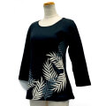 ハワイアン雑貨やハワイアンアパレルで人気のプカナから、1年中着まわしが楽しめる七分袖のストレッチTシャツ リーフブラックが新着です。 動きやすさにこだわったストレッチ素材と、きれいめなボディラインが特徴の、人気実績ともに抜群のコチラの7分袖Tシャツ。店頭での売れ行きも大好評です♪ 生地は肌触り最高なちょっと厚手のコットン100%で、レジャーにもレッスン時にもぴったりな動きやすさ。 グレーとクリーム色のラウアエリーフが重なって織りなすシンプルで洗練されたデザインを優しい発色で前身頃にプリント。シンプルでシックなカラーリングが素敵です。 春秋冬シーズンのレッスンやジムだけでなく、もちろん普段着としてもお出かけ用としても着回せちゃうオススメの1枚です。