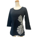 ハワイアン雑貨やハワイアンアパレルで人気のプカナから、1年中着まわしが楽しめる七分袖のストレッチTシャツ ビッグモンステラブラックが新着です。 動きやすさにこだわったストレッチ素材&美しいシェイプを映し出すボディラインが特徴の、人気実績ともに抜群のコチラの7分袖Tシャツ。店頭での売れ行きも大好評です♪ 生地は肌触り最高なちょっと厚手のコットン100%で、レジャーにもレッスン時にもぴったりな動きやすさ。 大小3つのモンステラシルエットを、薄いグレーでプリント。 モノトーン調でシンプルだけどおしゃれ感と存在感ばっちりな、スタイリッシュさが人気です。 オールシーズンのレッスンやジムだけでなく、もちろん普段着としてもお出かけ用としても着回せちゃうオススメの1枚です。