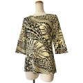 ひんやり冷感でサラっとした触感が評判の、接触冷感生地を使用して作った接触冷感素材ストレッチTシャツ タパ ベージュイエローがプカナから新着です。 ・生地に触れた瞬間からひんやりとした感覚を感じていただける涼しさ ・伸縮自在で動きやすさにこだわったストレッチ素材 ・二の腕やデコルテの露出をおさえ、ウエストラインを作ったきれいめボディライン が3大特徴。 店頭での売れ行きも大好評です♪ 接触冷感という特殊な加工がしてある、真夏にうれしすぎる生地は肌触りもバツグン。 フォーマルにもカジュアルにも着回していただけるよう、綺麗なシルエットとエレガントなタパ総柄の組み合わせで仕上げました。 タパを総柄プリントした生地はフラシスターのみならずハワイ好きにはたまらないデザイン。 ONにもOFFにも、フォーマルにも普段着としても着回せちゃうオススメの1枚です。 【お客様へ】 ※こちらの商品は総柄の生地をカットして縫製しております。裁断位置によって、柄の見え方は1つ1つ変わりますので、どうぞご了承の上お買い求め頂きますようお願い致します。
