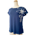 現地仕様なハワイアンアパレルで人気のPUKANAから、フェミニンな印象でとっても動きやすいストレッチTシャツの最新作ティアレ ネイビー ML&XLが登場。涼しげでとっても夏らしい、プカナが今シーズンおすすめする自信作です♪ バイヤーが注目するポイントは「ノースリーブ」「フェミニンなボディライン」「洗練された王道ハワイアンプリント」の3つ。 ノースリーブとは言っても、袖口幅は中が見えてしまう心配がない作り。 レーヨン95%、ポリウレタン5%素材は、ボディに程よくフィットするやわらかな着心地。とにかくフェミニンな印象でほんとオススメですよ。 そしてなんといっても!このシリーズのレッスンTシャツではなかなか無い「 XLサイズ 」を展開しているところが希少です! MLサイズはMサイズを中心にした一般的なレディースフリーなサイズ感。XLサイズはその名の通りLよりも大きめを着られる方用の作りになっています。 とにかく国産品ではなかなかだせないこの雰囲気。 特に着回し力バツグンのネイビー生地の左肩にスタイリッシュにホワイトプリントされたティアレはステキのひとことです。 ざっくり着られて、こんな洗練されたデザインなら、ジーンズやレギンス、ガウチョとあわせるだけでシンプルスタイリッシュな大人感が完成しちゃいますよ。 フラのレッスンはもちろん、普段着にもリゾートにも着回せちゃう優秀な1着。これでこのお値段はゼッタイお買い得です♪