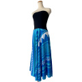 ハワイの雰囲気満点なアパレルが全国で人気のPUKANAから、3通りの着こなしが楽しめる往年の名作、3wayドレスワンピースの最新デザイン、タパカヒコブルーの新着です♪ こちら、ロングベアトップドレス、ショートベアトップドレス、ロングスカートの3通りの着こなしが楽しめる、コスパの高い人気ドレスの最新バージョン。 ベアトップを折り返すとショート丈ドレスワンピとして、ベアトップをロールダウンしてそのまま腰で履くとロングスカート、いろいろな楽しみ方が出来ちゃうんです♪ レーヨン100%のスカート生地をたっぷり贅沢な量つかっておりますので、動くたびに素敵すぎる揺れ感が最高なんです。踊ったときはもちろん、歩いているときもさりげなく女性らしく魅せてくれます。 シックなブラックのベアトップに鮮やかなブルー生地のスカートの組み合わせ。タパカヒコ柄に差し色のホワイトや濃淡ブルーがとっても映える人気柄、とっても大人っぽくステージ映えする一着です♪