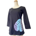 ハワイアン雑貨やハワイアンアパレルで人気のプカナから、ONにもOFFにも1年中着まわしが楽しめる七分袖のストレッチTシャツ モンステラグラデーションブラックが新着です。 動きやすさにこだわったストレッチ素材&美しいシェイプを映し出すボディラインが特徴の、人気実績ともに抜群のコチラの7分袖Tシャツ。店頭での売れ行きも大好評です♪ 生地は肌触り最高なちょっと厚手のコットン100%で、レジャーにもレッスン時にもぴったりな動きやすさ。 左前身頃に大きく素敵なモンステラのグラデーションプリントがプリントされていて存在感たっぷり。 シンプルだけどしっかり主張のある、スタイリッシュなデザインが素敵です。 オールシーズンのレッスンやジムだけでなく、もちろん普段着としてもお出かけ用としても着回せちゃうオススメの1枚です。