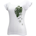 全国のフラダンサーだけでなく、ハワイアンファンの方々、ジムに通う方等々から待望のお声をいただいていたカットオフストレッチTシャツ、モンステラ&プルメリアの、No.1人気ホワイトが、ララフラ製で新発売です♪このTシャツの人気のヒミツは、その着心地。カラダにフィットしてボディラインを美しく見せてくれる上に、踊りやすさを最優先した作りにいたしました。襟ぐり大きめ、袖丈みじかめで、エレガントで洗練された印象に仕上がっています。背中にもプリントがあって、ターンの時にもセンスが漂いますよ!