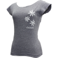 全国のフラダンサーだけでなく、ハワイアンファンの方々、ジムに通う方等々から待望のお声をいただいていたカットオフストレッチTシャツ、ティアレ柄の新色グレーが、ララフラ製で新発売です♪このTシャツの人気のヒミツは、その着心地。カラダにフィットしてボディラインを美しく見せてくれる上に、踊りやすさを最優先した作りにいたしました。襟ぐり大きめ、袖丈みじかめで、エレガントで洗練された印象に仕上がっています!
